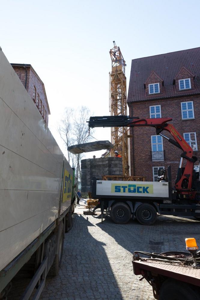Gegenwärtig werden die neuen Heizungsrohre und Elektroleitungen verlegt sowie die Fenster saniert. Seit Jahresbeginn laufen ebenso die Vorbereitungen für das neue Treppenhaus an der Giebelseite. Der Kran ist bereits aufgestellt worden. „In dem Anbau werden wir auch einen Personenaufzug installieren lassen, über den alle Etagen erreichbar sind“, kündigte Heiko Schröder an. Ein echter Hingucker soll ein verglaster Übergang werden, der im zweiten Obergeschoss zwei Gebäude verbinden wird.