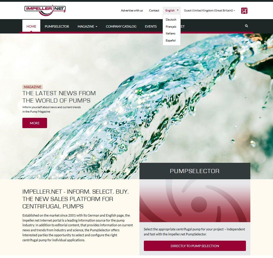 Mit den zusätzlichen Sprachen Französisch, Italienisch und Spanisch wird ein erweiterter Kundenkreis in der jeweiligen Landessprache erreicht. Die Verfügbarkeit der neuen Sprachen erstreckt sich zudem auf das gesamte Portal und ist sowohl im PumpSelector als auch im Magazin-Bereich verfügbar. Artikel, die nicht in der jeweiligen Sprache bereitstehen, werden als maschinenübersetzte Version verfügbar gemacht. Auch die Buchung von Werbeanzeigen, Firmenprofilen, Kalendereinträgen und Stellenanzeigen ist somit in jeder der verfügbaren Sprachen möglich.