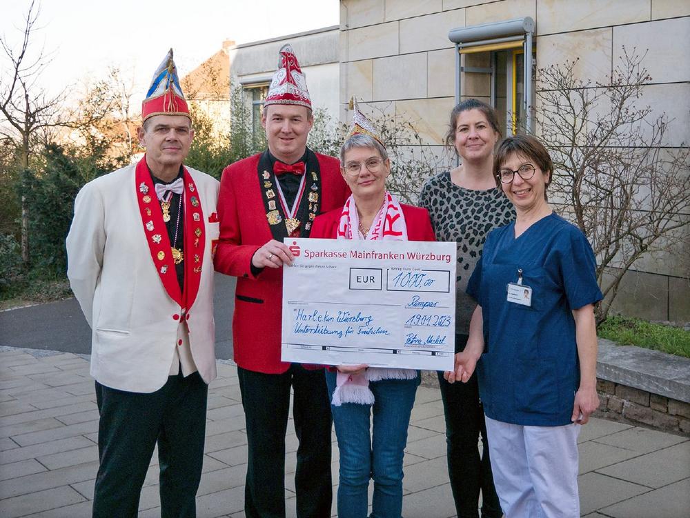 „Im Faschingsverein steht zwar der Spaß im Vordergrund, dennoch sind wir uns der Verantwortung auch für die Schwächeren der Gesellschaft bewusst,“ so Petra Michel. Durch einen privaten Kontakt rückte das Projekt „Harl.e.kin“ ins Bewusstsein und es entstand der Wunsch, hier zu unterstützen. Mit großer Freude nahmen Harl.e.kin-Nachsorgeschwester Birgit Engelhardt und Sandra Kern, Koordinatorin des Nachsorgeprojekts, den Scheck von den drei Karnevalisten entgegen.
