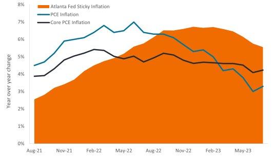 Obwohl der Gesamtindex der persönlichen Verbraucherausgaben im Jahresvergleich auf 3,3 % und seine Kernkomponente auf 4,2 % gesunken ist, dürften andere, detailliertere Indikatoren den hawkishen Währungshütern der Fed Munition liefern. Der jährliche „Sticky Consumer Price Index“ der Atlanta Fed liegt immer noch bei 5,3 %. Die annualisierte 3-Monats-Rate der gleichen Datenreihe ist jedoch auf erträglichere 3,6 % gesunken. Angesichts der widersprüchlichen Signale – und einer immer noch wachsenden Wirtschaft, trotz der bereits erfolgten Zinserhöhungen um 525 Basispunkte – halten wir die Vorsicht der Fed für gerechtfertigt.