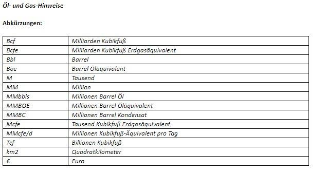 Die zukunftsgerichteten Informationen beruhen auf bestimmten zentralen Erwartungen und Annahmen des Managements von MCF Energy, einschließlich der Erwartungen und Annahmen, die anschließend in dieser Pressemitteilung unter den Öl- und Gasempfehlungen erwähnt werden, und darüber hinaus in Bezug auf die vorherrschenden Rohstoffpreise, die wesentlich von den Preisprognosen abweichen können, die zum Zeitpunkt der jeweiligen von GCA durchgeführten Ressourcenprüfungen galten, sowie auf Differenzen, Wechselkursen, Zinssätzen, geltenden Lizenzgebühren und Steuergesetzen, künftigen Produktionsraten und Schätzungen der Betriebskosten, der Leistung künftiger Bohrungen, Ressourcenvolumina, dem voraussichtlichen Zeitplan und den Ergebnissen von Investitionsausgaben; der Erfolg beim Bohren neuer Bohrlöcher; die Angemessenheit der geplanten Kapitalausgaben für die Durchführung geplanter Aktivitäten; der Zeitpunkt, der Ort und das Ausmaß künftiger Bohrungen; der Zustand der Wirtschaft und des Explorations- und Produktionsgeschäfts; die Betriebsergebnisse; die Leistung; die Geschäftsaussichten und -möglichkeiten; die Verfügbarkeit und die Kosten von Finanzierungen, Arbeitskräften und Dienstleistungen; die Auswirkungen des zunehmenden Wettbewerbs; die Fähigkeit zur effizienten Integration von Vermögenswerten und Mitarbeitern, die durch Akquisitionen erworben wurden, die Fähigkeit zur erfolgreichen Vermarktung von Erdgas und die Fähigkeit von MCF, Zugang zu Kapital zu erhalten. Obwohl das Unternehmen davon ausgeht, dass die Erwartungen und Annahmen, auf denen solche zukunftsgerichteten Informationen beruhen, angemessen sind, sollte man sich nicht zu sehr auf die zukunftsgerichteten Informationen verlassen, da MCF Energy keine Garantie dafür geben kann, dass sie sich als richtig erweisen werden. Da sich zukunftsgerichtete Informationen auf zukünftige Ereignisse und Bedingungen beziehen, sind sie naturgemäß mit Risiken und Ungewissheiten behaftet. Die tatsächlichen Ergebnisse, Leistungen oder Errungenschaften von MCF Energy können erheblich von denen abweichen, die in den zukunftsgerichteten Informationen zum Ausdruck gebracht oder angedeutet wurden, und dementsprechend kann keine Zusicherung gegeben werden, dass eines der in den zukunftsgerichteten Informationen erwarteten Ereignisse eintritt oder eintreten wird, oder, falls dies der Fall sein sollte, welche Vorteile wir daraus ziehen werden. Das Management hat die obige Zusammenfassung der Annahmen und Risiken im Zusammenhang mit zukunftsgerichteten Informationen in diese Pressemitteilung aufgenommen, um den Wertpapierinhabern einen umfassenderen Einblick in künftige Geschäftstätigkeiten zu geben; solche Informationen sind für andere Zwecke möglicherweise nicht geeignet.
