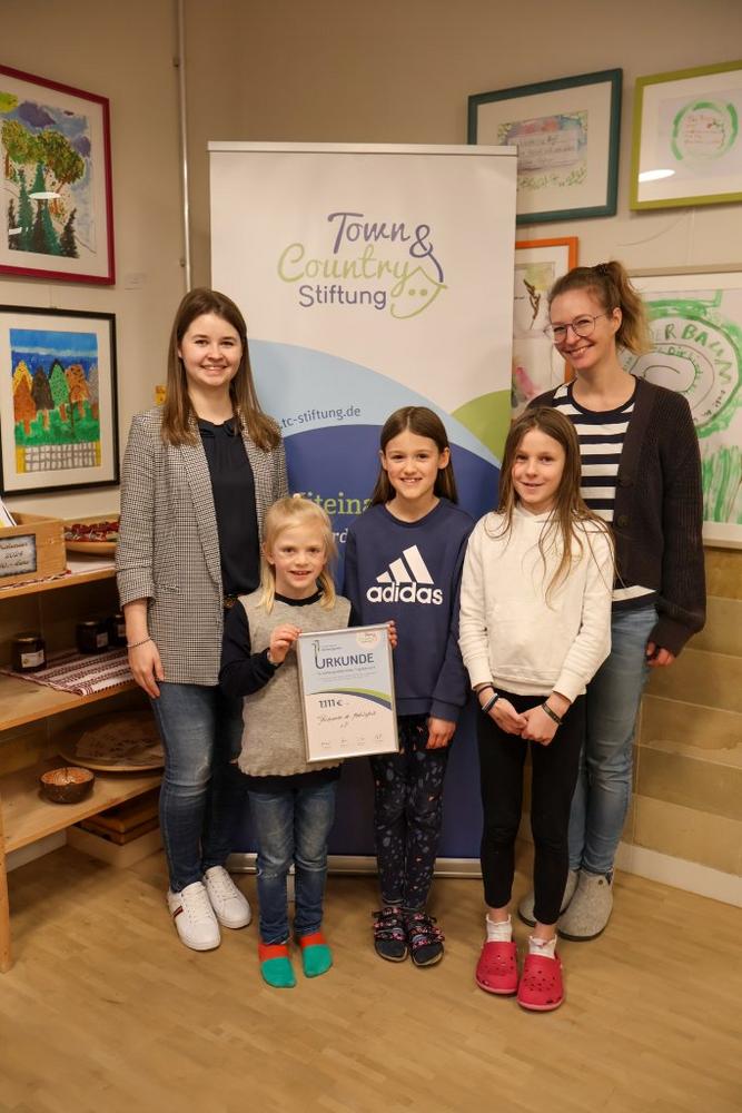 Stiftungsbotschafterin Verena Sandner von der IMMO-Expert GmbH in Thyrnau übergab die Urkunde stellvertretend für die Stiftung und lobte das Engagement der Beteiligten: „Seit weit mehr als 10 Jahren setzen Sie hier Ihre pädagogische Vision von Schule um – und das sehr erfolgreich. Das merkt man schnell, wenn man sich ein bisschen umschaut und die Kinder erlebt. Danke für diesen großartigen Einsatz, den wir gern mit dem Town & Country Stiftungspreis würdigen und unterstützen!“