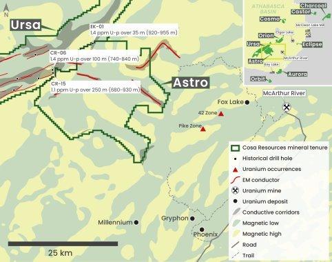 Cosa Resources ist ein kanadisches Uranexplorationsunternehmen, das im Norden von Saskatchewan tätig ist. Das Portfolio des Unternehmens umfasst etwa 237.000 Hektar in mehreren zu 100 % unternehmenseigenen und von Cosa betriebenen Joint-Venture-Projekten in der Region des Athabasca-Beckens, die allesamt noch nicht ausreichend erkundet sind und mehrheitlich innerhalb oder im Umfeld bewährter Urankorridore liegen.