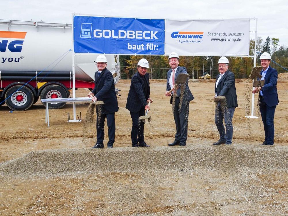 Mit einem feierlichen ersten Spatenstich gab die GREIWING logistics for you GmbH heute Vormittag (25. Oktober) den Startschuss für den Bau einer neuen Niederlassung im südbayrischen Burghausen. Das neue Logistikzentrum unweit der österreichischen Grenze umfasst eine Fläche von rund 60.000 Quadratmetern. Platz finden dort zwei Logistikhallen, eine Hochsiloanlage mit 24 355-Kubikmeter-Behältern, ein Siloturm mit drei Abfüllsilos à 120 Kubikmetern sowie ein Verwaltungsgebäude. Die Investitionskosten des Bauvorhabens beziffert der Logistikdienstleister mit Sitz im westfälischen Greven auf 33 Millionen Euro. Die Inbetriebnahme der Anlage ist für das 3. und 4. Quartal 2018 geplant.