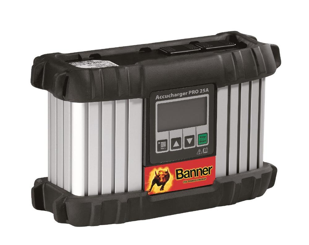 Wer ein vollautomatisches Batterie-Ladegerät für professionelle Anwendungen sucht, ist mit dem neuen Banner Accucharger Pro 25A bestens bedient. Mit der Erweiterung seines Zubehörsortiments bietet Banner Batterien ab sofort ein neu entwickeltes vollautomatisches Ladegerät an, das für den Werkstatt-Bereich, für Pkw, Lkw, Bus, Einsatzfahrzeuge bis hin zu Bau- und Landmaschinen bestes geeignet ist.