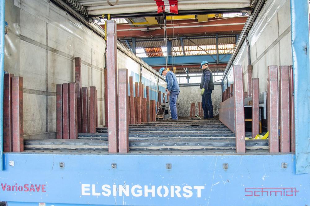 Um das volle Potenzial von VarioSAVE auszuschöpfen, haben viele Elting-Kunden ihre gesamte Be- und Entladung auf das Ladungssicherungssystem abgestimmt. Hierzu zählen Einkaufgenossenschaften für das Dachdeckerhandwerk, ein großes Aluminiumwalz- und Schmelzwerk sowie viele Stahlhändler wie die G. Elsinghorst Stahl und Technik GmbH aus Bocholt. Gerade bei Mischladungen im regionalen Zulieferverkehr mit vielen Stopps mache VarioSAVE den Unterschied, berichtet Elsinghorst-Lademeister Georg Nienhaus: „Im Schnitt sparen wir damit 90 Minuten pro Tag und Lkw gegenüber der kraftschlüssigen Ladungssicherung per Spanngurt.“ Dabei habe sich der Grundsatz „Viel hilft viel“ bewährt: „Die Fahrzeugproduktivität steigt überproportional mit der Anzahl der verbauten Ladungssicherungsschienen. Weil die Sicherungsmöglichkeiten mit jeder weiteren VarioSAVE-Schiene enorm steigen.“