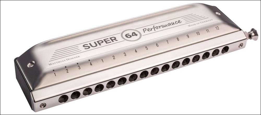 Die Super 64 ist seit jeher der Prototyp der chromatischen High-End Mundharmonika. Mit der Neuauflage dieses legendären Instruments hat HOHNER die Messlatte nochmal höher gelegt. Die neue Super 64 hat nicht nur ein atemberaubendes Design, sondern auch viele innovative Features. Das VarioSpring System erlaubt, die Federstärke des Schiebers individuell anzupassen. Durch die revolutionäre Konstruktion des neuen SilentSlide ist der Schieberlauf komplett luftdicht und fast geräuschlos. Zusätzlich sorgen die optimierten Kanzellenkammern für schnellste Tonansprache. Die neue Super 64 setzt außerdem Maßstäbe in den Bereichen Langlebigkeit und einfacher Wartung. Die Stimmplatten sind ohne Kontakt zu den Deckeln verschraubt, was die Spannung auf die Stimmplatten reduziert und einfache Wartungsarbeiten erleichtert. Die Deckel sind einzeln angebracht und das mitgelieferte Reißverschlussetui lässt Feuchtigkeit entweichen, schützt vor Schmutz und dient gleichzeitig als praktische Werkbank. Die neue Super 64 – ein großer Schritt in der Evolution der chromatischen Mundharmonika.