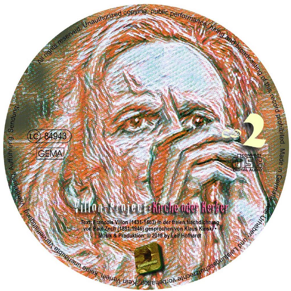 Auf dem Doppel-Album “KIRCHE ODER KERKER“ (seit 10.7.2018 auf allen online-Musikportalen / seit 1.8.2018 als Doppel-CD verfügbar) präsentiert VILLON-PROJECT 23 stilistisch zeitlose und top aktuelle Songs mit den mittelalterlichen Gedichten des französischen Klassikers François Villon (1431-1463), unnachahmlich rezitiert von Klaus Kinski (Erstveröffentlichung der Kinski Rezitationen 1959-1961 – deshalb seit 2011 leistungsschutzrechtlich frei für eine musikalische Interpretation). Das Stilspektrum reicht von ruhiger Gitarrenmusik, zeitgenössischem Jazz, Brit-Pop, alternativem kraftvollem Gitarren-Rock bis hin zu Dancefloor tauglichem Elektronic-Sound mit instrumentalen Improvisationen. Kraftvoll und zugleich poetisch ist die Schauspielkunst von Klaus Kinski noch einmal zu erleben!