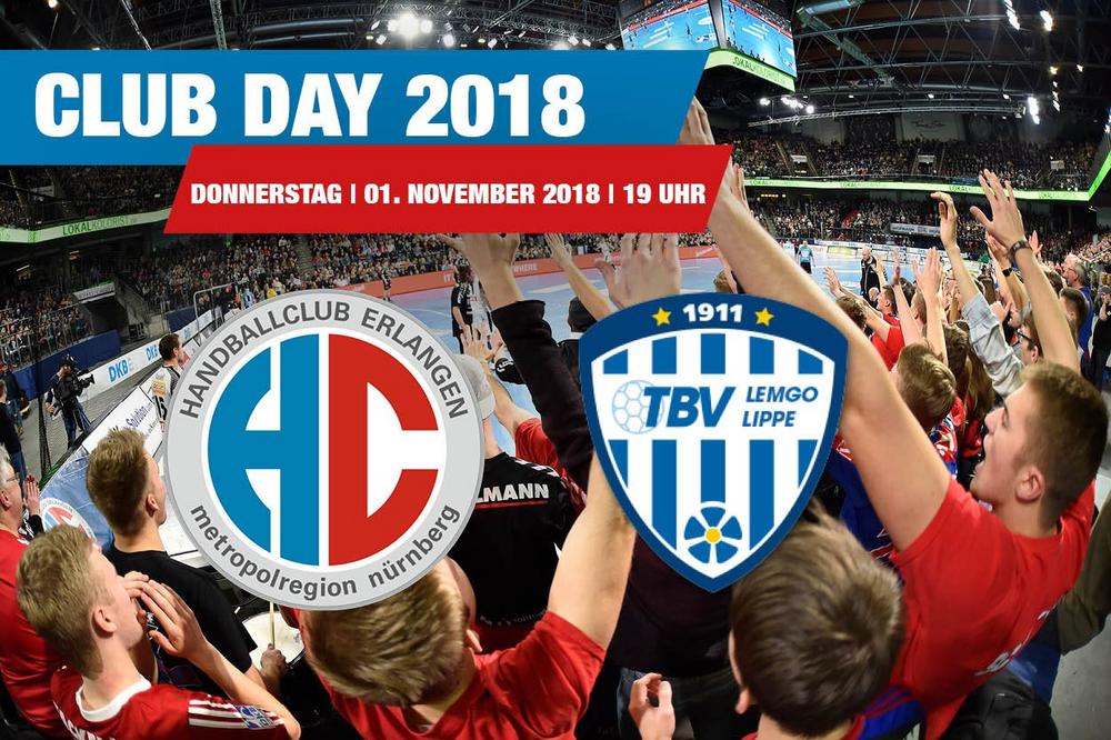Nach den sensationellen Erfolgen aus den vergangenen Jahren wird es auch in der aktuellen Saison wieder einen CLUB-DAY beim HC Erlangen geben. Am 1. November 2018, ab 19.00 Uhr, lädt der fränkische Erstligist zum vierten Mal alle bayerischen Handball-Vereine in sein Wohnzimmer ein, um die Mannschaft gegen den TBV Lemgo Lippe anzufeuern.