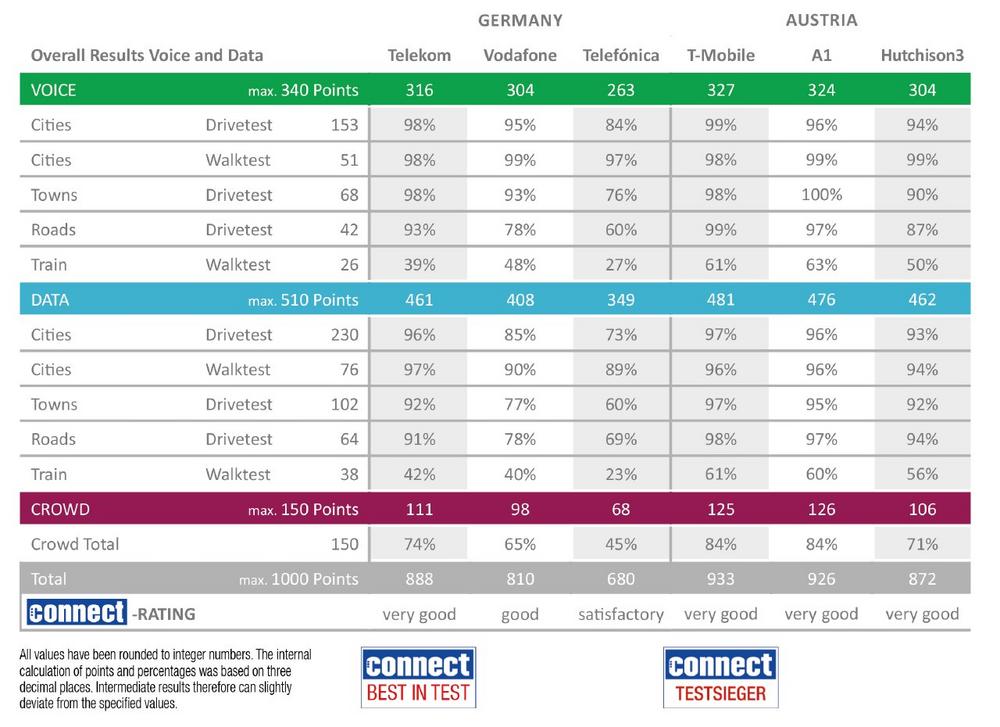 Deutsche Telekom und T-Mobile in Österreich gewinnen den connect-Netztest