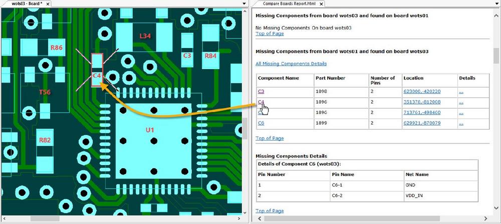 Der mit der Compare Boards-Funktion in C-LINK erstellte Bericht erlaubt schnelles Navigieren über Hyperlinks. So ist in kürzester Zeit eine Aufstellung entwickelt, was sich im Testprogramm ändern muss: Hat sich die Bestückung verändert, müssen im Testprogramm Messwerte angepasst werden. Sind Bauteile hinzugekommen, so sind diese aufzunehmen. Entfallen im Gegenzug Bauteile, werden hierfür die Prüfschritte auskommentiert oder gelöscht. Sind auf der neuen Baugruppenversion Bauteile an andere Netze angeschlossen, werden diese künftig über andere Testkanäle geprüft. Bei der Umsetzung hilft das Redesign-Tool.