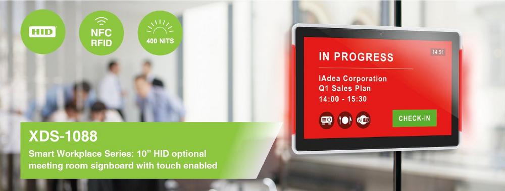 Helles XDS-1088 Digital Signage Signboard mit NFC & RFID Modul von IAdea Deutschland für den Smart-Workplace