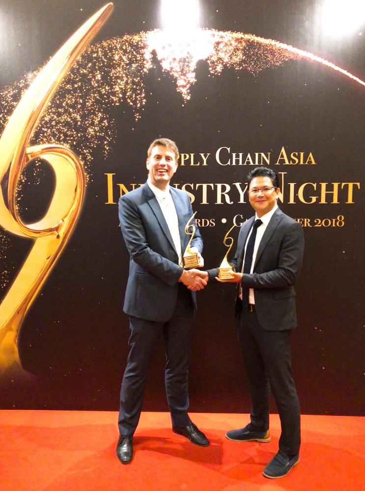 Erstmals gehört auch WITRON zu den Preisträgern. Zusammen mit Pepperl + Fuchs nahm Win Tun, WITRON-Sales Manager in Singapur, vor mehr als 500 geladenen Gästen im luxuriösen „RESORT WORLD SENTOSA“ den Award in der Kategorie „Supply Chain Transformation of the Year“ entgegen.