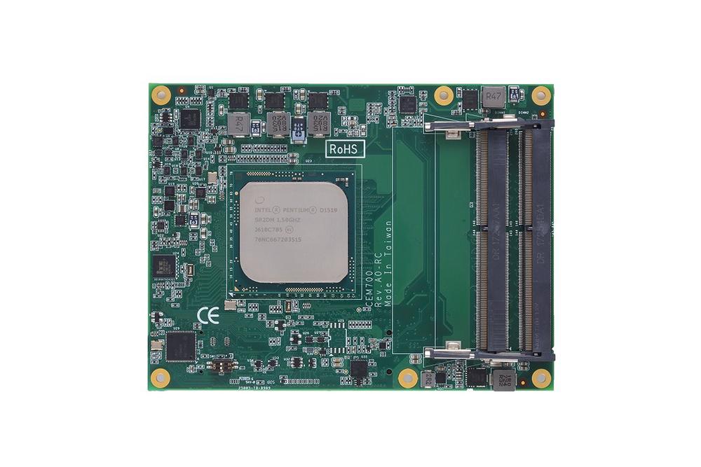 Das erste COM Express Type 7 Modul von AXIOMTEK lautet auf den Namen CEM700 und kann mit erweiterungsfähigen Prozessoren angetrieben werden – so z.B. dem 16-Core Intel® Xeon® D-1577 oder 4-Core Intel® Pentium® D1519 Prozessor (Codename: Broadwell DE). Es unterstützt zwei DDR4-2400 SO-DIMM Slots für einen Speicherplatz von bis zu 32 GB und hat zwei 10GBASE-KR Channels. Bei einer Größe von 125x95mm ist das Modul ein leistungsstarker Begleiter, der eine server-ähnliche Leistung hat. Es eignet sich daher besonders für die Einbindung in rechenintensiven und platzbeschränkten Anwendungen, die eine hohe Daten- und Netzwerkverarbeitungsmenge erfordern, wie es z.B. im Bereich Edge-Computing, bei Mikroservern, Datenübertragungsgeräten und anderen Netzwerkbereichen nützlich ist.