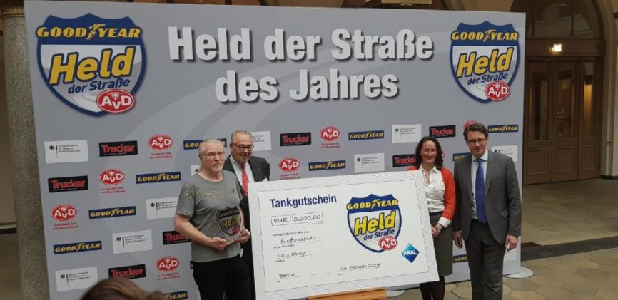 . AvD und Goodyear ehren den „Held der Straße 2018“ Verkehrsminister Andreas Scheuer würdigt vorbildliche Hilfe Preisverleihung im Verkehrsministerium in Berlin Im September 2018 wurde Lutz Kluge zum „Held der Straße des Monats“. Er rettete einem verunfallten Mann das Leben, indem er die klemmende Tür des brennenden Fahrzeugs öffnete und dem verletzten Fahrer so das […]