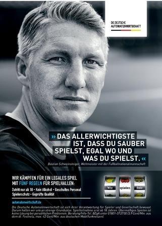 Jürgen Naundorff, Bundessekretär des Blauen Kreuzes in Deutschland: „Spiel ist nicht gleich Spiel, Herr Schweinsteiger! Nein, es ist eben nicht ‚… egal, wo und was du spielst‘. Auch wenn Sie das behaupten! Wenn sich ein Fußballspieler auf dem Rasen verausgabt, dann zeigt er Einsatzfreude, Kreativität, Spielwitz und nicht selten körperliche Höchstleistung – wie Sie es eindrucksvoll getan haben und zu einem Vorbild für unzählige Menschen wurden. Dagegen ist der Automatenindustrie nur am finanziellen Einsatz des Spielers gelegen. Viele Spieler sind überschuldet. Die Kreativität beim Automatenspieler ist gleich Null. Spielwitz wandelt sich zu Stummsinn und statt körperliche Höchstleistung zu erbringen, wird beim Spieler seelischer Dauerstress erzeugt. Mehr noch: das gewerbliche Automatenspiel besitzt laut der Sucht- und Drogenreferenten der Bundesländer das größte Potenzial, Menschen spielsüchtig zu machen. Wir fordern Sie auf, sich nicht weiter in den Dienst einer Industrie zu stellen, die den finanziellen und damit nicht selten einhergehenden seelischen Ruin ihrer Nutzer einkalkuliert. Noch schlimmer: sie wehrt sich entschieden, süchtigen Spielern, die sich sperren lassen wollen, diesen Schutz zu gewähren. Herr Schweinsteiger, zeigen Sie Größe wie auf dem Rasen und arbeiten Sie nicht länger mit der Deutschen Automatenwirtschaft zusammen. Werben Sie stattdessen für suchtpräventive Maßnahmen! Denn Sucht ist eines der größten gesellschaftlichen Probleme der Gegenwart. Damit spielen Sie gekonnt einen Pass in die Mitte der Gesellschaft. Selbst spielfrei lebende Glücksspielabhängige können so am Ball bleiben. Ein Fan von Ihnen aus dem Blauen Kreuz in Deutschland.“