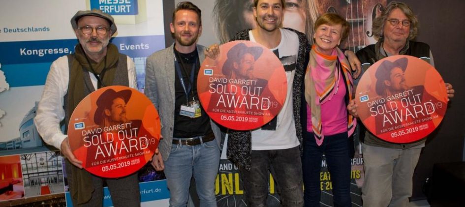 Auf seiner „Unlimited“-Jubiläumstour machte Ausnahmetalent David Garrett am gestrigen Abend Halt in der ausverkauften Messe Erfurt. Zu seinem Erfolg und seinem faszinierenden Konzert gratulierte die Erfurter Messe dem Star-Geiger David Garrett mit einem SOLD OUT AWARD. Der als Jimi Hendrix unter den Geigern gefeierte David Garrett bot am gestrigen Abend seinem begeisterten Publikum eine überwältigende […]