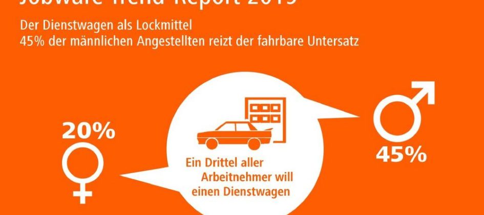 Jobware Trend-Report 2019: Fast die Hälfte der Männer will Dienstwagen, Frauen ist Fitness wichtiger