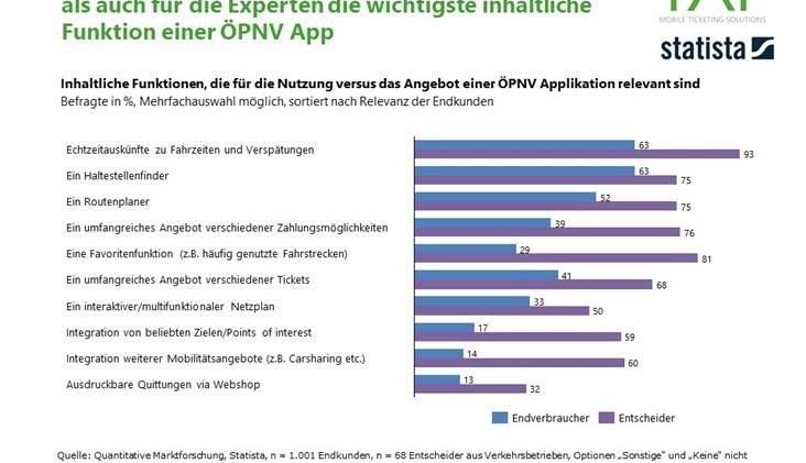 Die im Auftrag der TAF mobile GmbH von Statista durchgeführte Marktstudie „Kundenwünsche und -erwartungen an Apps und mobile Zahlungsmöglichkeiten im ÖPNV“, beschäftigte sich unter anderem auch mit der Fragestellung nach den „Wichtigsten technischen und inhaltlichen Funktionen von ÖPNV Apps sowie Webshops“. Aus den Antworten der Online-Fragebögen beider befragten Gruppen – „Fahrgäste“ und „Entscheider / Verkehrsunternehmen“ […]