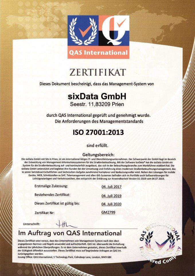 sixData GmbH ist ISO 27001 zertifiziert