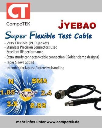 CompoTEKs langjähriger Partner und Kabelexperte, JYEBAO, erweitert sein bereits umfangreiches Produktportfolio um hochflexible Mikrowellen-Testkabel. Letztere zeichnen sich insbesondere durch ihre hohe mechanische Flexibilität bei gleichzeitig sehr konstanten elektrischen Werten aus. Außerdem können Sie für die folgenden Serien hochwertige Präzisions-Steckverbinder aus Edelstahl wählen: 1.85, 2.4, K (2.92), SMA und N. Diese sind durch eine entsprechende Kabeleinführung […]