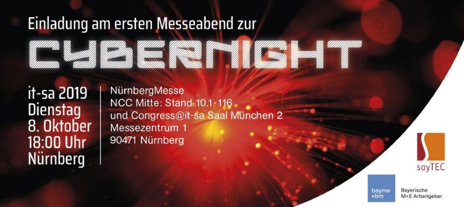 sayTEC AG und bayme vbm laden zur Cybernight im Rahmen der it-sa 2019