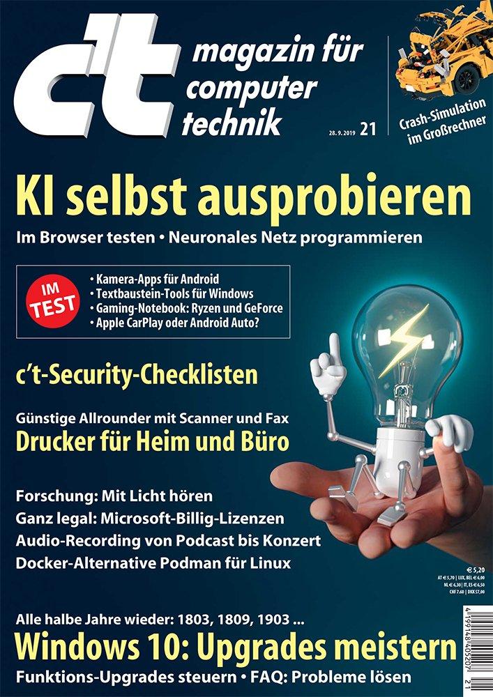 Die Computerzeitschrift c’t steht seit 1983 für eine anspruchsvolle, redaktionell unabhängige und fachlich fundierte Berichterstattung. Als meistabonnierte Computerzeitschrift Europas greift c’t im vierzehntäglichen Rhythmus vielfältige Themen auf – praxisnah und stets auf Augenhöhe mit den Lesern.