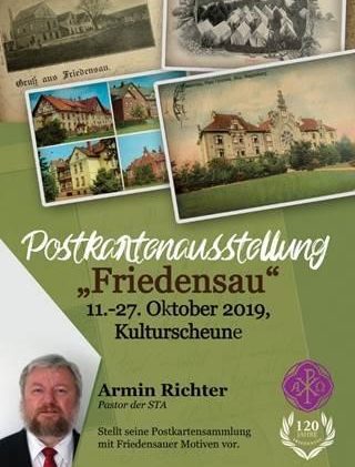 „Friedensau – von der Klappermühle zur Hochschule“, so heißt eine Sammlung von Postkarten mit Motiven aus 120 Jahren Friedensau. Ein privater Sammler stellt sie vom 11. bis 27. Oktober 2019 in der Kulturscheune Friedensau, An der Ihle 10, 39291 Möckern-Friedensau, aus. Mehr als 250 Postkarten sind im Laufe der 120 Jahre mit Friedensauer Motiven gedruckt […]