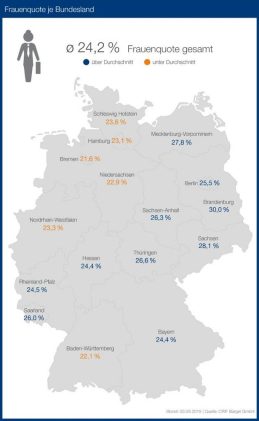 Die Frauenquote in Führungspositionen liegt aktuell bei 24,2 Prozent. Dies zeigt eine aktuelle Auswertung des Informationsdienstleisters CRIFBÜRGEL von 1,2 Millionen Führungspositionen in deutschen Unternehmen. CRIFBÜRGEL hat die Aussagen von Ministerin Franziska Giffey zur geplanten Gesetzesnovelle zur Durchsetzung von Frauenquoten in Unternehmensgremien zum Anlass der Analyse genommen. In der Novelle soll es eine Sanktion für Unternehmen […]