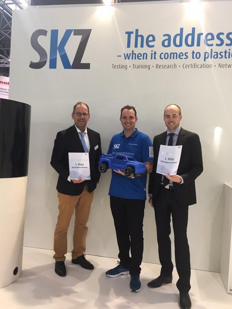 Zentrales Thema am Messestand des SKZ war der Bereich „Automotive“. Passend dazu war in diesem Jahr die große Carrera-Bahn mit eigens hierfür additiv gefertigten SKZ-blauen Leichtbau-Modellautos ein wahrer Publikumsmagnet. Hier konnten sich jeweils zwei wettkampfbegeisterte Messebesucher in einem Rennen messen. Mit einer absoluten Rekordzeit von fünf Sekunden erreichte Peter Hügen, Vertriebsingenieur bei Sikora, souverän den Wochensieg der ersten Messewoche und Markus Pest von der Firma Coesfeld konnte ebenfalls mit einer Spitzenzeit von knapp über fünf Sekunden die Rennen der zweiten Woche für sich entscheiden. Als Preise dürfen sich beide Gewinner über je ein kostenloses Aussteller-Paket beim nächsten SKZ-Netzwerktag am 27. Mai 2020 in Würzburg freuen.