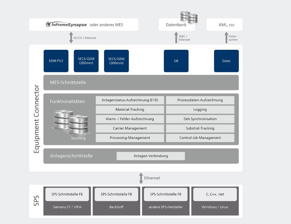Bei der Implementierung der Schnittstellen und der MES-Anbindung unterstützt camLine die Kunden mit seinem breit gefächerten, auf über 30 Jahren Erfahrung beruhenden Know-how. Als Mitglied im internationalen Halbleiter- und Fotovoltaikverband SEMI wirkte camLine darüber hinaus aktiv an der Erarbeitung von Schnittstellenstandards (SECS/GEM) mit.