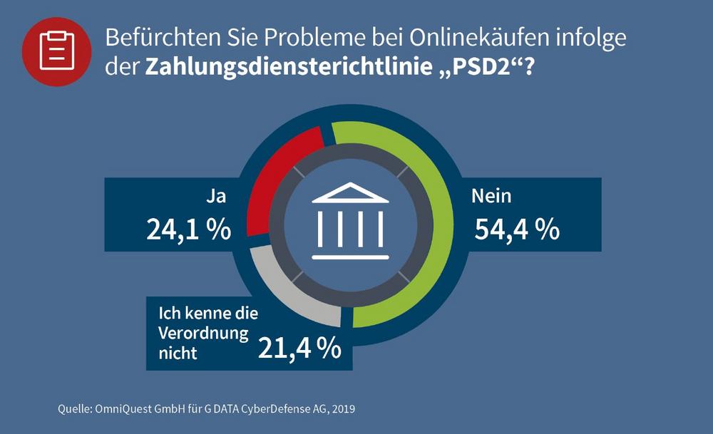 Mit dem Black Friday in dieser Woche und dem Beginn des Advents geht es jetzt in die heiße Phase beim Weihnachtsgeschenkekauf. Dabei befürchtet fast ein Viertel der Deutschen Probleme beim Onlineshopping auf Grund der Zahlungsdiensterichtlinie PSD2: Sie haben Sorge, dass Zahlungen für bestellte Ware oder Onlinekontozugänge nicht funktionieren könnten – das zeigt eine repräsentative Umfrage von G DATA CyberDefense. Große Sorgen machen sich die Nutzer auch um ihre persönlichen Daten: Fast jeder Zweite hat Angst vor Missbrauch – und dass, obwohl die Datenschutz-Grundverordnung (DSGVO) mittlerweile weitgehend umgesetzt sein sollte. Das deutsche IT-Sicherheitsunternehmen G DATA befragte insgesamt 1.000 deutsche Internetnutzer.