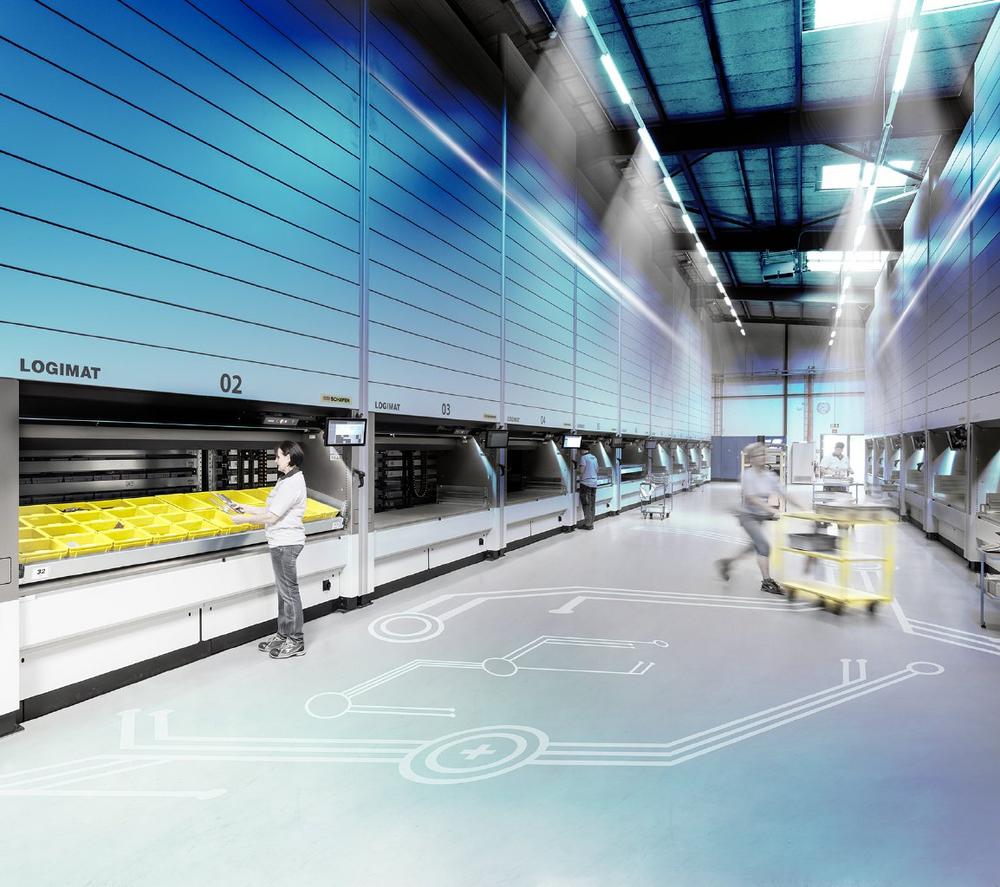 Auch der Lagerlift LOGIMAT® gehört auf der gleichnamigen Messe zu den Exponaten. Als Kleinteilelager- und Kommissionierlösung kann der Lagerlift als autonomes System betrieben, direkt in SAP im Sinne einer Plug&Play-Lösung integriert werden, oder an andere übergeordnete ERP-Systeme mit der Software WAMAS® LOGIMAT angebunden werden.