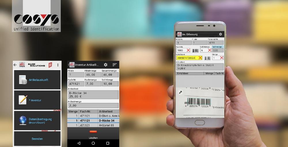 Da Smartphones keine fest integrierten Barcodescanner oder Imager zur Erfassung von Strichcodes oder DataMatrixCodes besitzen, wird eine zusätzliche Komponente benötigt, mit der die hochauflösende Gerätekamera zu einen hoch performanten Barcodescanner wird. Die benötigte Komponente bietet COSYS als jahrelanger Experte für komplexe Inventursysteme. Mit COSYS High Performance Scanning für Android und iOS, lassen sich sämtliche am Markt existierenden Smartphones und Tablets ganz einfach über die Gerätekamera zu hoch leistungsstarken Barcodescannern verwandeln und können dementsprechend auch für die Inventur verwendet werden. Damit die Inventur in der Produktion, dem Großhandel oder im Einzelhandel reibungslos verläuft, bietet COSYS seine intelligente Inventur App an, die COSYS High Performance Scanning enthält.