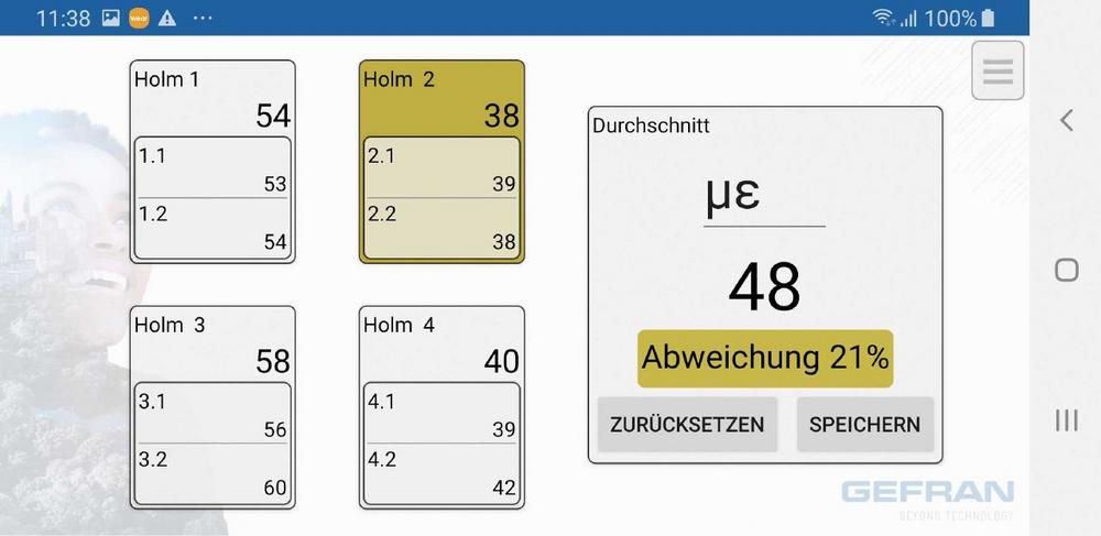 Die zur K-Messe vorgestellte App wurde nochmals deutlich überarbeitet, um die Übersichtlichkeit und den Bedienkomfort bei der mobilen Überprüfung von Spritzgussmaschinen weiter zu optimieren. Die Messung erfolgt über zwei Sensoren pro Holm, die einfach und schnell per Magnet montiert werden. Die App zeigt die individuellen Messwerte der Sensoren, die biegekompensierte Dehnung der einzelnen Holme sowie deutlich sichtbar den Durchschnittswert an. Letzterer stellt nach Eingabe des Durchmessers und Elastizitätsmoduls der Holme die Schließkraft der Maschine in Kilonewton oder Tonnen dar. Durch die Darstellung der maximalen Abweichung eines Holmes vom Durchschnittswert und einem Alarm bei Überschreitung des vorgegebenen Maximalwerts erkennt der Anwender sofort, wenn die Maschine nicht optimal eingestellt ist. Eine weitere Anwendung des Systems ist die Messung der Holmbiegung. So können schon beim Maschinendesign Optimierungen durchgeführt werden, die eine Überbelastung und ggf. Beschädigung der Holme verhindern.