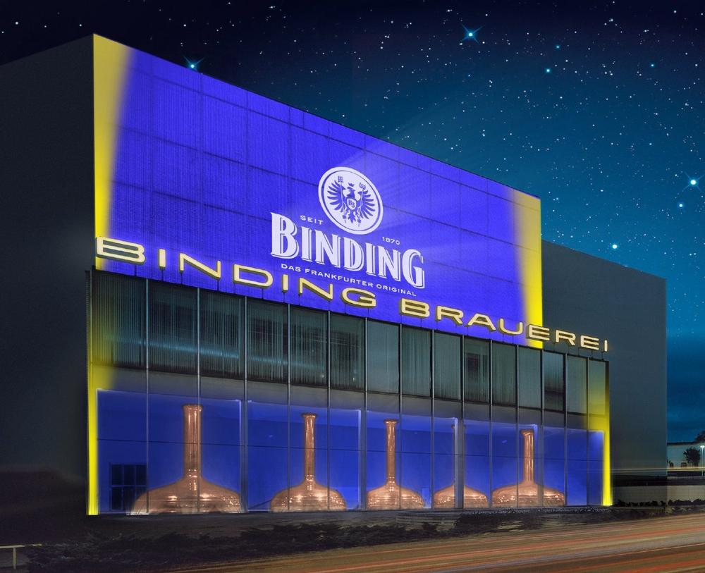 Während der Luminale 2020 wird das Herz der Binding-Biere in einem besonderen Licht erstrahlen. Die Sudkessel werden in ein warmes Weiß getaucht, die Farben Gelb und Blau setzen zusätzliche Farbakzente. Bei der Inszenierung steht Gelb symbolisch für Bier, Blau ist im Binding-Markendesign verankert und signalisiert in der Farbensprache Treue. Und für diese Treue bedankt sich die Traditionsbrauerei am Sachsenhäuser Berg mit der ungewöhnlichen Lichtgestaltung bei allen Frankfurtern und Binding-Liebhabern.