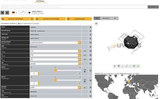 Schnellere Konstruktionen im Maschinenbau dank neuem uversa CAD Produktkatalog powered by CADENAS