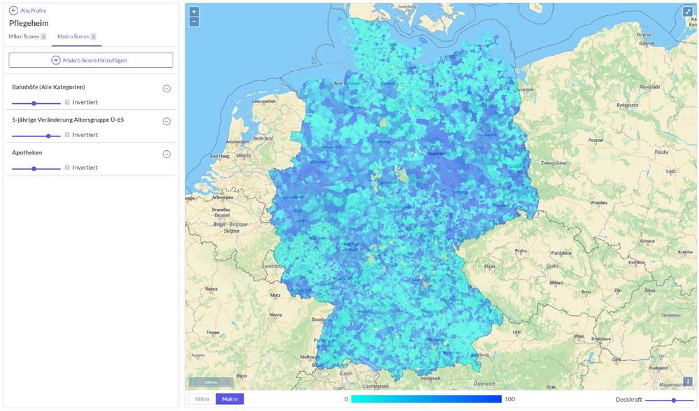 RELAS hält mehrere Hundert Makro- und Mikroscores zu Auswahl bereit, mit deren Hilfe Nutzer des Softwareprodukts individuelle auf die eigenen Kriterien zutreffende Profile für Lagebewertungen erstellen können. Zu diesen Scores gehören zum Beispiel infrastrukturelle Daten, wie die Anbindung an den öffentlichen Nah- oder Fernverkehr sowie an das Straßennetz, die Versorgungsstruktur mit Einzelhandel oder die Nähe zu Bildungseinrichtungen, kulturellen Angeboten und Gastronomie. Ebenso fließen Daten zum Immobilienmarkt oder zur wirtschaftlichen Entwicklung in ganz Deutschland ein.