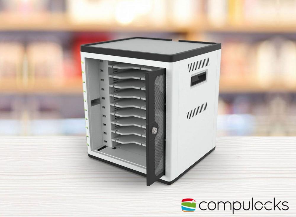 Die Bereitstellung der nötigen Infrastruktur für die sichere Aufbewahrung und das zentrale Aufladen der Geräte ist eine wichtige Voraussetzung für die Digitalisierung im Bildungswesen. Damit die Tablets und Notebooks diebstahlsicher und kompakt aufbewahrt werden können, kommen mobile Ladestationen oder Ladewandhalter zum Einsatz. Sie sind beispielsweise für Apple iPads, Samsung Galaxy Tabs, Chromebooks oder Microsoft Surface Tablets geeignet, lassen sich flexibel aufstellen und schützen die Geräte beim Aufladen vor Vandalismus und Diebstahl. Die Ladestationen von Compulocks und Ergotron bieten Platz für bis zu 48 Geräte gleichzeitig. Zudem sind die Gehäuse der Aufbewahrungsschränke so beschaffen, dass die Tablets / Laptops gut belüftet sind, um einen Wärmestau und somit das Überhitzen der angeschlossenen Geräte zu vermeiden. Die Geräte liegen in einzelnen Fächer und sind leicht zu entnehmen. Die Trolley Tabletschränke zeichnen sich durch eine einfache Bedienung und hohe Mobilität aus. Mit den Compulocks oder Ergotron Tabletwagen können ganze Tablet- / Notebook Sätze sowohl im Bildungssektor als auch in Kliniken oder Krankenhäusern fachgerecht zentral aufbewahrt und transportiert werden.