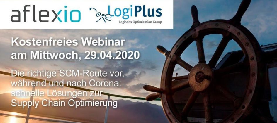 Am 29.04.2020 findet der erste Teil einer kostenfreien dreiteiligen Webinarreihe der Supply Chain Experten von LogiPlus und aflexio statt. Im ersten Webinar berichten die Supply Chain Planungsspezialisten von aflexio und die SAP EWM-Pioniere von LogiPlus, welche Planungsansätze für volatile Zeiten funktionieren und wie man logistische Potentiale im Lager identifizieren und diese ausschöpfen kann. Die weltweite […]