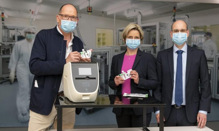 Das Ministerium für Wirtschaft, Arbeit und Wohnungsbau fördert die Entwicklung der Tests zum Vor-Ort-Nachweis des SARS-CoV-2 Virus mit sechs Millionen Euro. Bei der Spindiag GmbH in Freiburg wurde Wirtschaftsministerin Dr. Nicole Hoffmeister-Kraut heute (16. April) das mobile Testgerät, die Probennahme sowie die Durchführung eines beispielhaften Tests vorgeführt. Außerdem besichtigte die Ministerin die Fertigungslinie für die […]