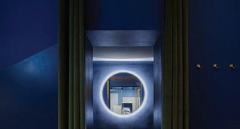 Ein kleines, in kräftigem Blau getünchtes Häuschen markiert markant und gleichzeitig zurückhaltend den Eingang der Bar. Über drei Stufen und eine dem Häuschen gleich gefärbte Holztür betritt der Gast einen etwa zwei Quadratmeter großen Vorraum. Seine einzige Lichtquelle erscheint hinter einem runden, für den kleinen Raum ungewöhnlich dimensionierten Spiegel. Ein Vorhang aus tiefgrünem Samt markiert […]