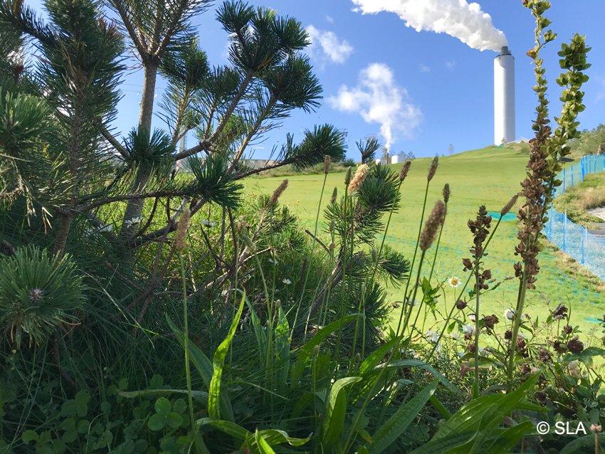 Drip-line irrigation ensures that the green mountain will permanently thrive. In this way, this species-rich vegetation with its grasses, herbs, perennials, shrubs and trees can and should serve as a “green cradle” for seeding the surrounding area of Copenhill.
