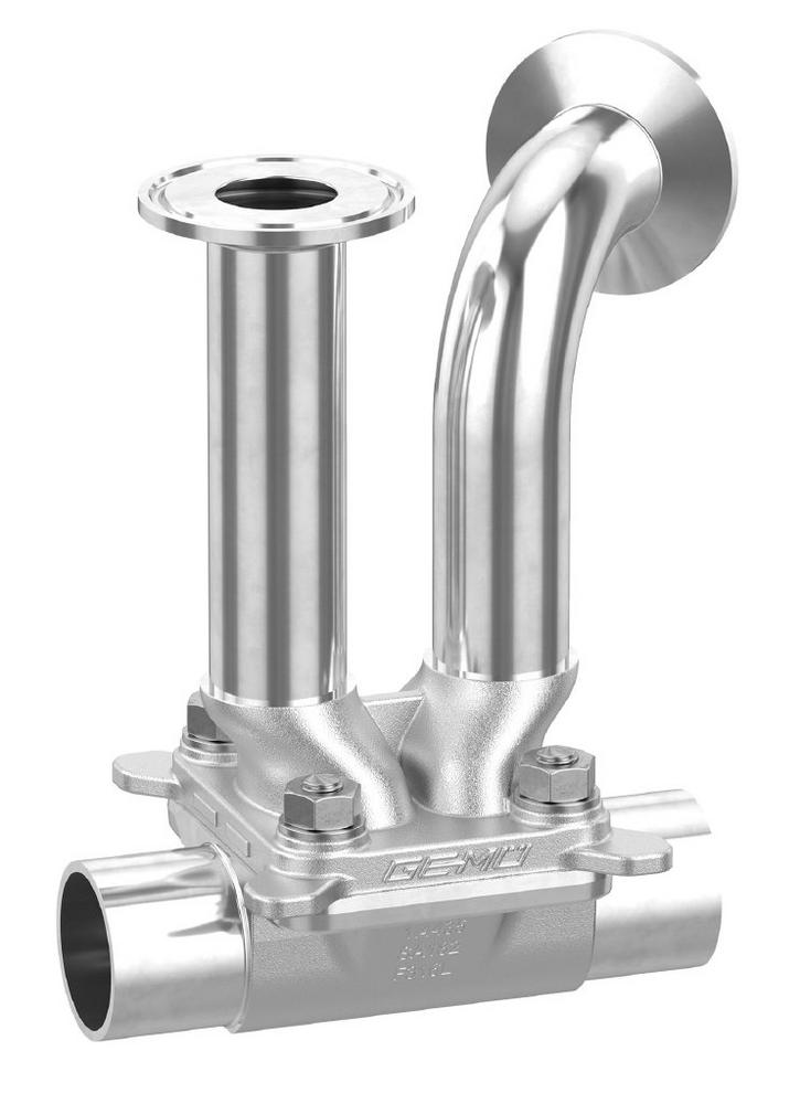Für eine endoskopische Untersuchung kann eine Kamera ebenso über die Anschlüsse des GEMÜ PPF in das Rohrleitungssystem eingeführt wie ein Schlauch zum Spülen angeschlossen werden. Da der Adapter mit Nutzung des kompletten Stutzendurchmessers angefertigt ist, ermöglicht diese Konstruktion einen optimalen Spülvorgang. Dieser kann in beide Durchflussrichtungen durchgeführt werden. Eine abschließende Druckprüfung kann mit GEMÜ PPF bis zu 16 bar Betriebsdruck erfolgen.