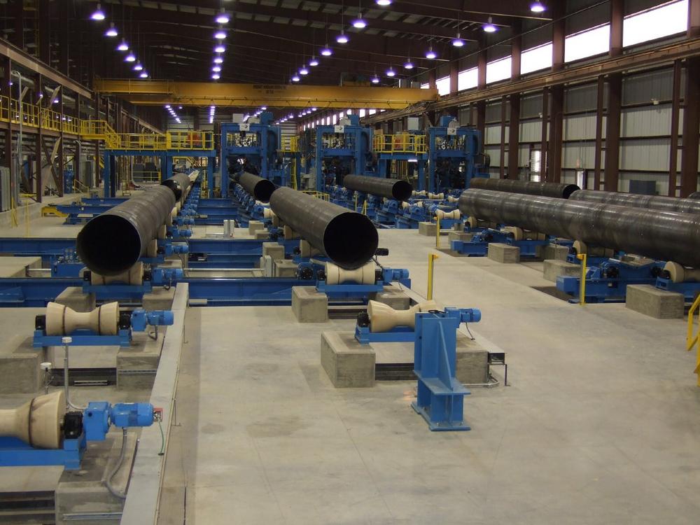 Nach jahrelanger Produktion mit SMS group-Nachschweißständen hat sich die Stupp Corporation in enger Absprache mit SMS für das Antriebssystem mit Schrägrollgang entschieden. Darüber hinaus soll der neue Nachschweißstand die existierenden drei nicht nur ergänzen, sondern auch Vergleichsdaten liefern: Beim Schrägrollgangsystem wird das Rohr nicht wie bei den anderen Ständen über doppel-kardanische Rollen, sondern mittels Rollen, welche im Spiralwinkel angestellt werden, bewegt. Um ein Rohr an Ort und Stelle zu drehen oder es in Längsrichtung oder schraubenförmig zu transportieren, kann der Winkel des Schrägrollgangs auf Knopfdruck von der Bedienerstation aus entsprechend geändert werden.