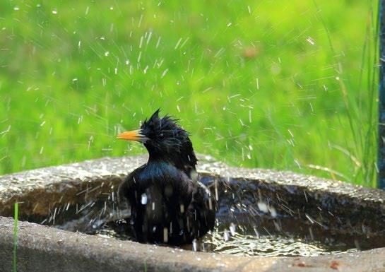 „Es gibt Vogelbäder im Gartenhandel, eine flache Schüssel, ein Blumentopf-Untersetzer oder ein Suppenteller tun es aber auch“, rät der NABU. Wichtig sei, dass eine Tränke für Vögel auf einem gut einsehbaren Platz nicht in unmittelbarer Nähe von Büschen eingerichtet werde. Sonst könne manch „Stubentiger“ der fröhlichen Badeschar ein jähes Ende bereiten.“ Vögel können nicht schwitzen, da sie im Gegensatz zu Säugetieren keine Schweißdrüsen besitzen. Sie verlieren bei Hitze also weniger Wasser. Trotzdem müssen Vögel täglich Wasser aufnehmen. Vor allem Körnerfresser sind auf Wasserstellen angewiesen, da ihre Nahrung nur wenig Feuchtigkeit enthält.