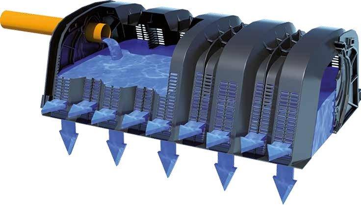 Man kann DRENING auch für die Entsorgung des zurückfließendem Wassers nutzen, das aus Becken getrennt von dem Kanalisationsnetz kommt. Das Material und die Struktur des DRENING wurden eigens für die Realisierung der hier für geeigneten Systeme entwickelt, die auch unter Verkehrsflächen positioniert sein können. Die Tiefe der Gruben oder der Gräben sind sehr minimiert.