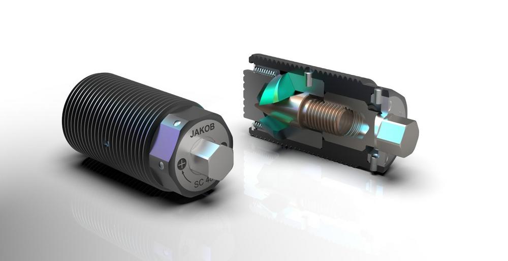 In addition to the proven sizes of M36, M48, M64 and M80, JAKOB also offers a special version SC 100. It can generate clamping forces of up to 250 Nm with just 130 Nm of torque. The power clamping screw is operated with a 14 mm Allen key. For safety’s sake, and in order to obtain reproducible values, the operation is best done with a torque wrench.