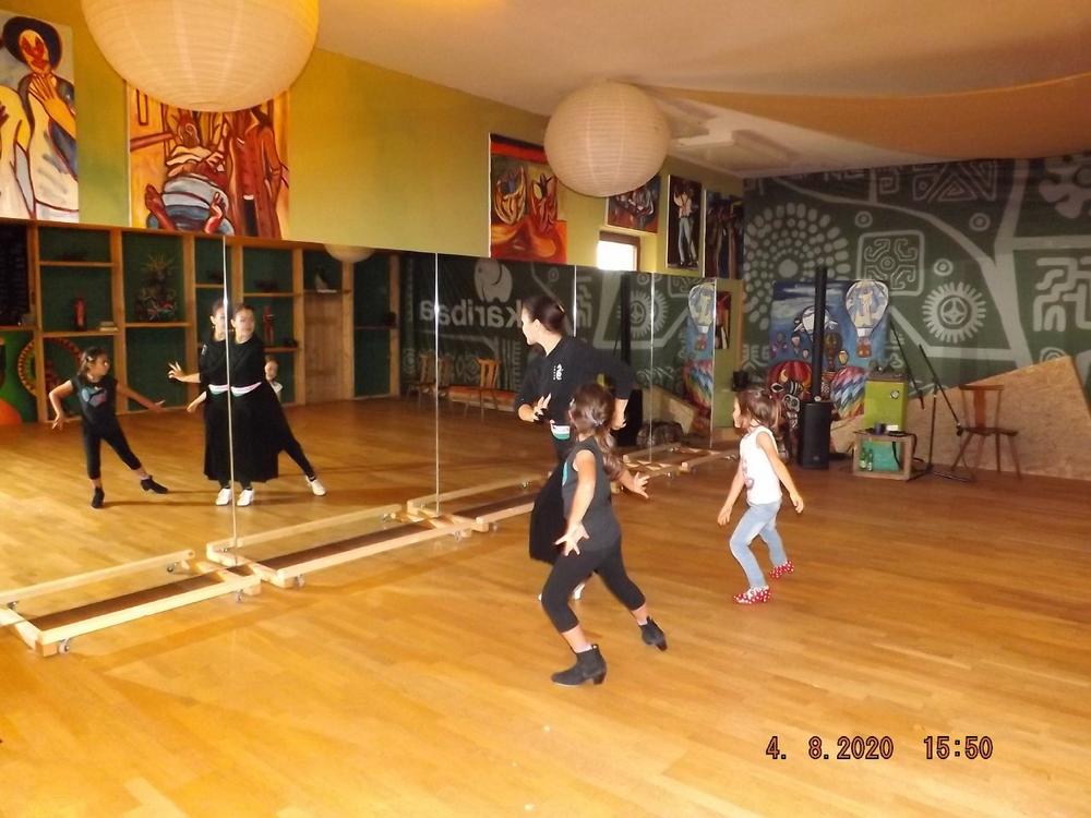 Zum Flamenco-Camp, 3. bis 8. August, haben wir den neuen Tanzboden aus Eichenparkett eingeweiht, Spiegelwand inklusive. Für unsere Flamenco-Schüler*innen ging damit ein Traum in Erfüllung: Komfortabler Tanzboden, viel Platz, Spiegel zur Eigenkontrolle und schönes Ambiente. Daher freuen sich unsere Schüler*innen schon heute auf den nächsten Termin.