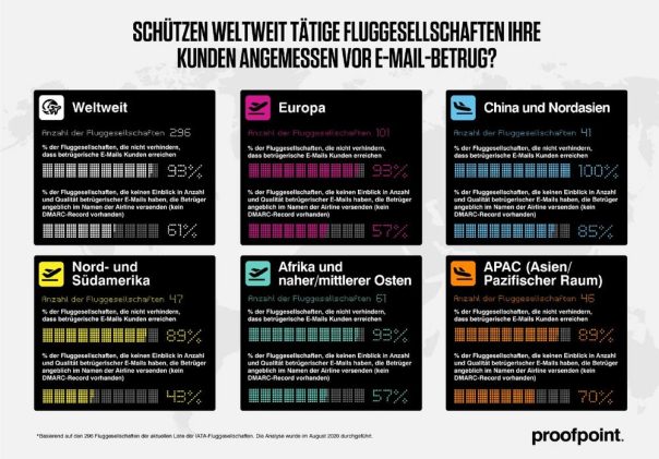 Die IATA-Fluggesellschaften schützen ihre Passagiere und andere IT-Anwender nicht davor, betrügerische E-Mails im Namen der Fluggesellschaft zu erhalten. Dies haben jetzt die Sicherheitsexperten des US-amerikanischen Cybersecurity-Unternehmens Proofpoint im Rahmen einer Untersuchung festgestellt. Dabei wurden alle 296 Mitgliedsfluggesellschaften der IATA (International Air Transport Association) berücksichtigt. Auf die IATA-Mitgliedsgesellschaften entfallen 82 Prozent des gesamten Flugverkehrs. Gestrichene Flüge, […]